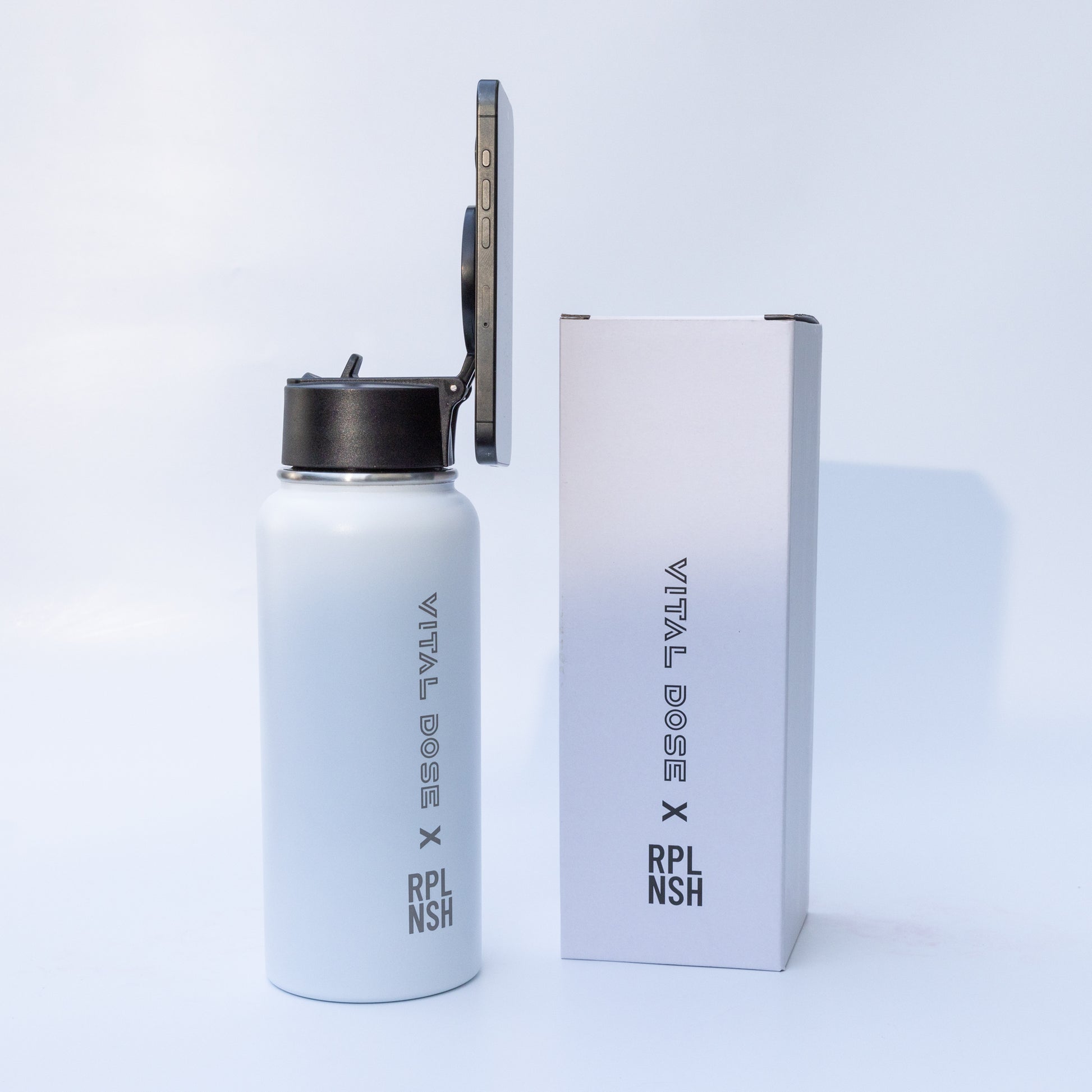 This insulated water bottle has a magnetic pop up stand that holds an iphone to allow you to capture your content whilst out and about.